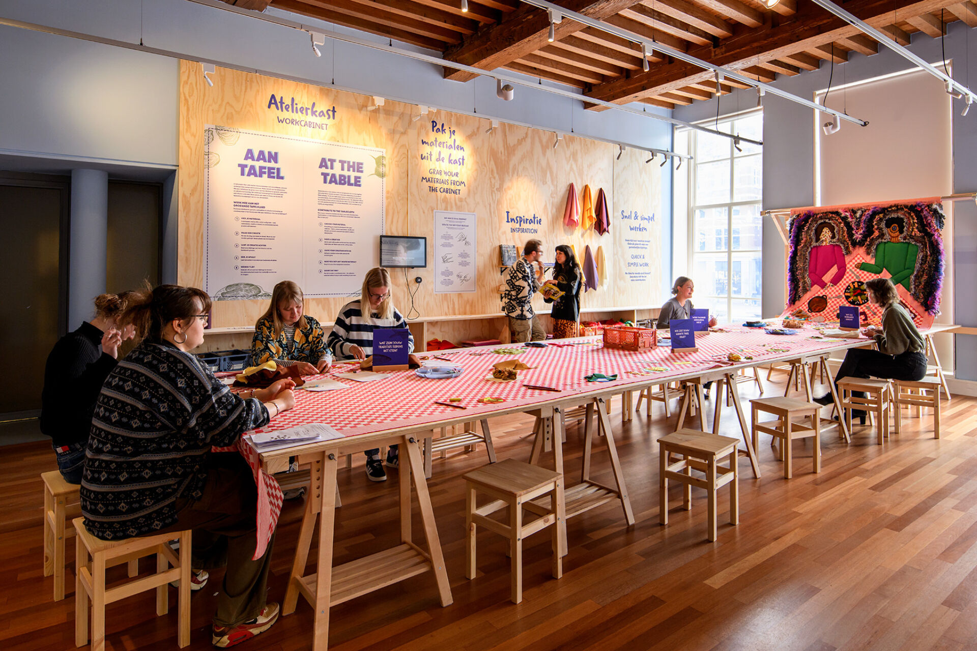 De bezoeker kan zelf een bijdrage leveren aan het kleed van kunstenaar Malou Sumah. Door een eigen gerecht van textiel toe te voegen, ontstaat er uiteindelijk een rijke weergave van de eetcultuur van hedendaags Amsterdam.