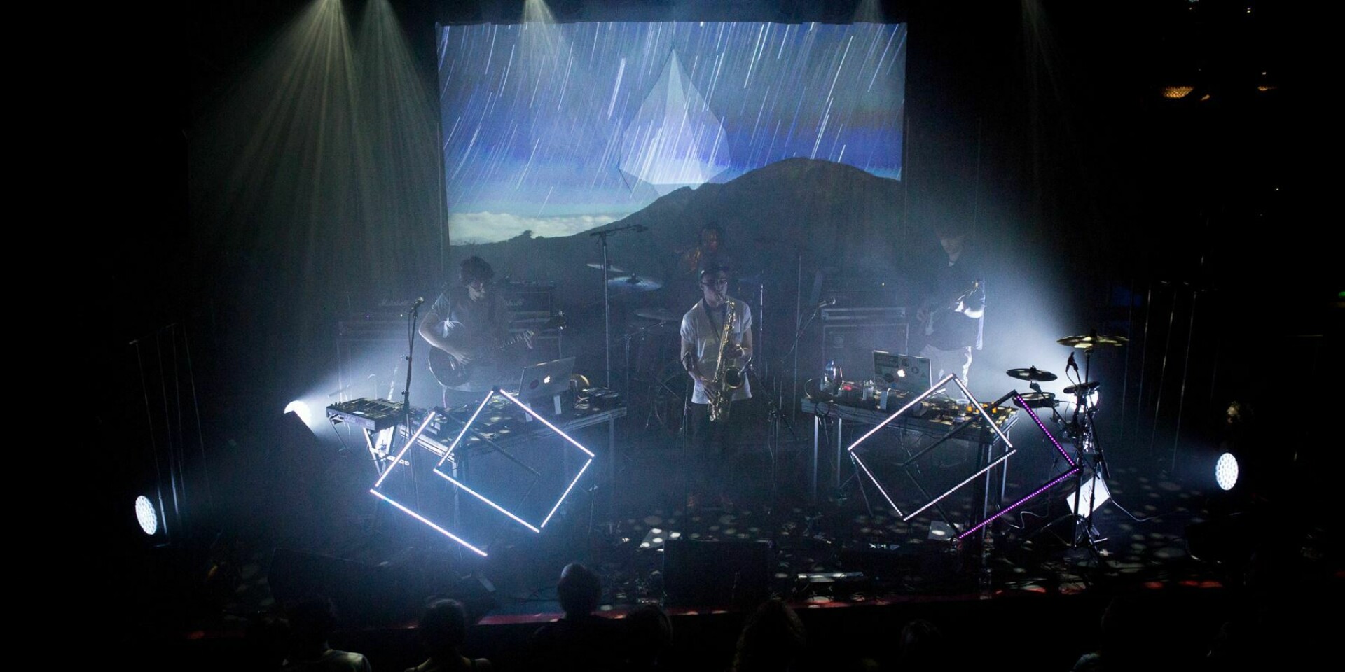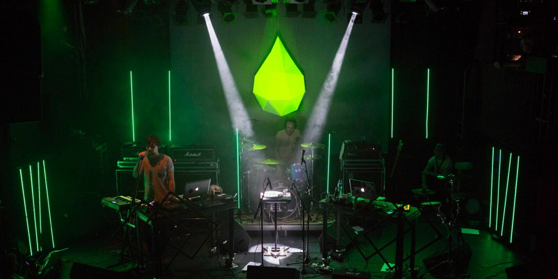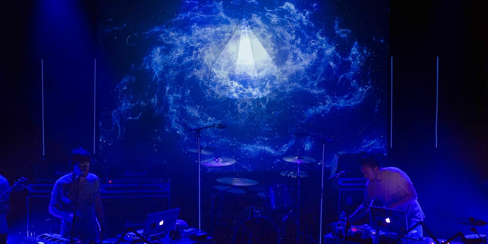 Baptist is live in haar element. Een grotere uitvoering van de druppel is daarom een onderdeel van het decor waarop ook tijdens de show geprojecteerd kan worden.