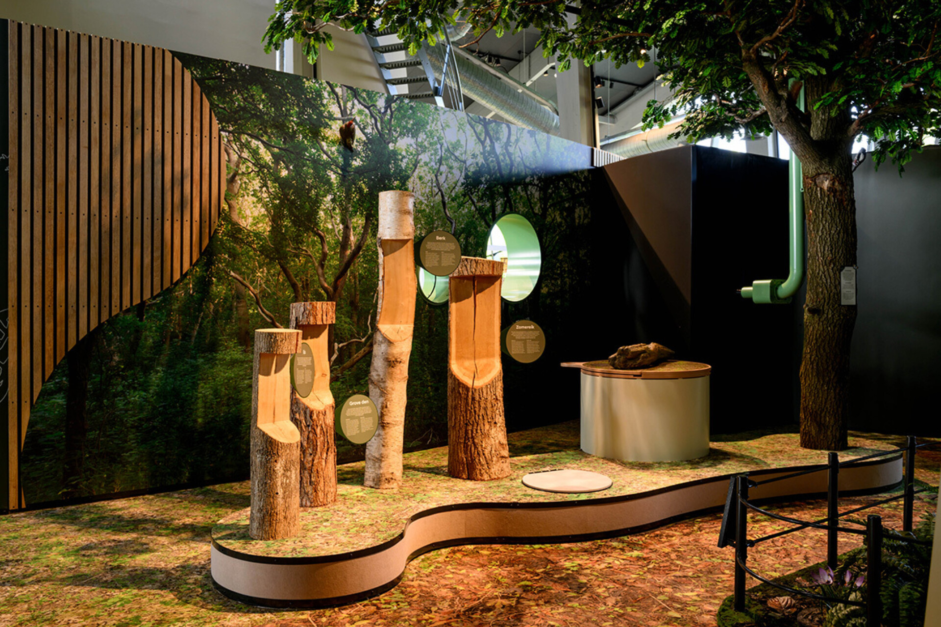 De sfeer van de ruimte verandert mee met de seizoenen. Dynamische belichting, wisselende seizoensgebonden diersoorten en landschapsfotografie zorgen ervoor dat de wereld van buiten in elk seizoen in het bezoekerscentrum binnen tot leven komt.