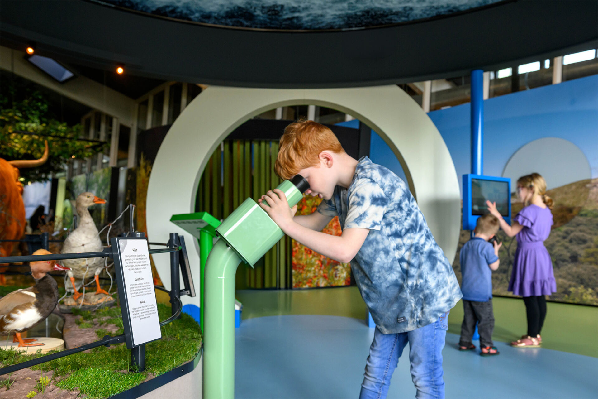 In het bezoekerscentrum worden al je zintuigen geprikkeld: beleef de geuren en nachtelijke geluiden van het bos, voel de wind bij de zeereep, aai de vacht van een hooglander of kijk door de ogen van een havik.