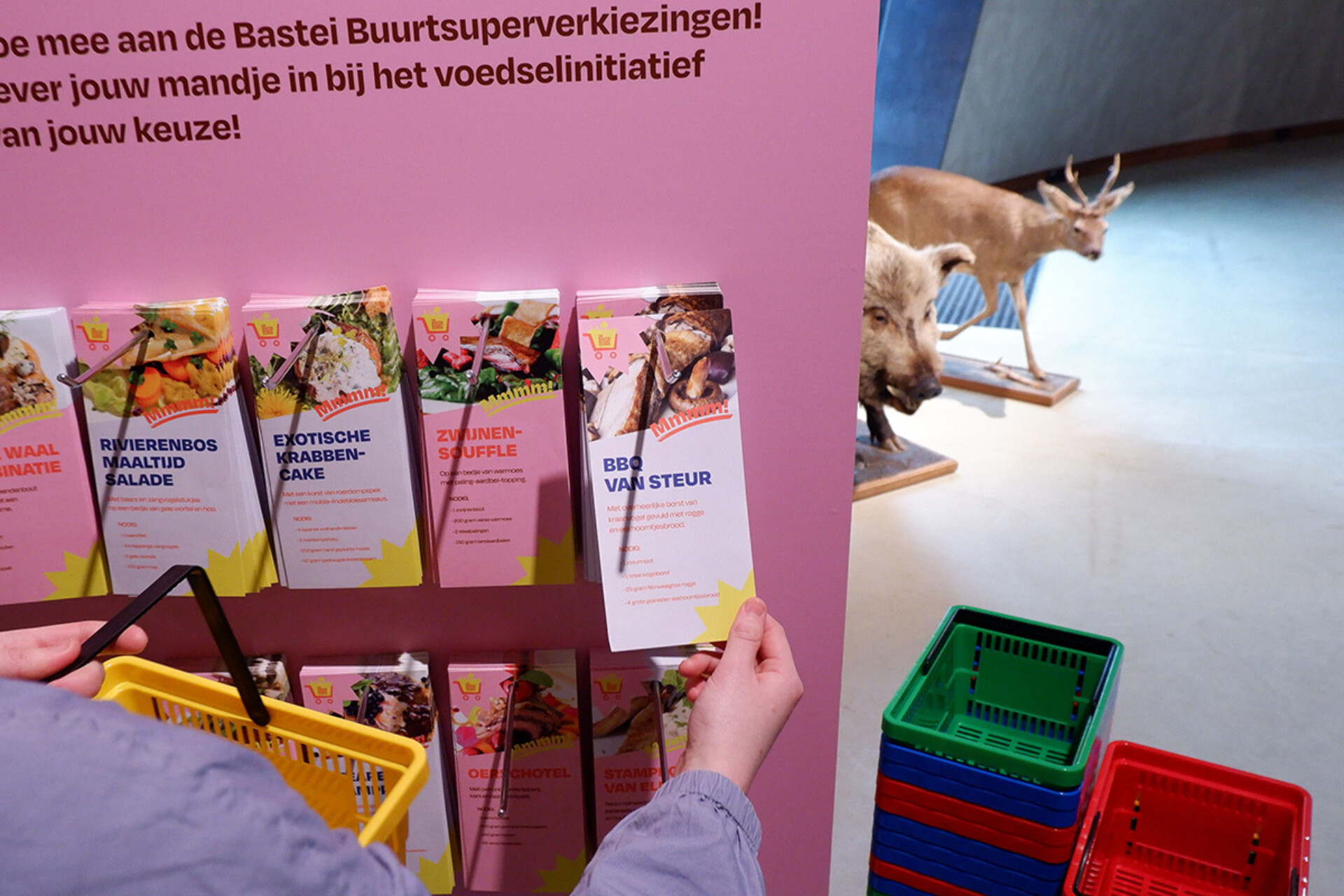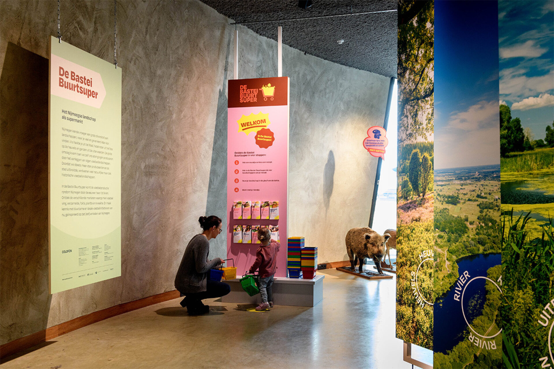 In de tentoonstelling De Bastei Buurtsuper komt de voedselproductie rondom Nijmegen tot leven. Met een winkelmand in de hand gaat de bezoeker in deze supermarkt zelf ingrediënten verzamelen voor een verrukkelijke maaltijd. Nadat de boodschappen zijn verzameld loopt de bezoeker naar de tafels, waar het verhaal van de producten in de context van vijf tijdvakken verteld wordt. Uiteindelijk ontdek je de verschillende manieren waarop men voedsel ving, verzamelde, fokte, plantte en kweekte door de eeuwen heen en de invloed van en op het landschap.