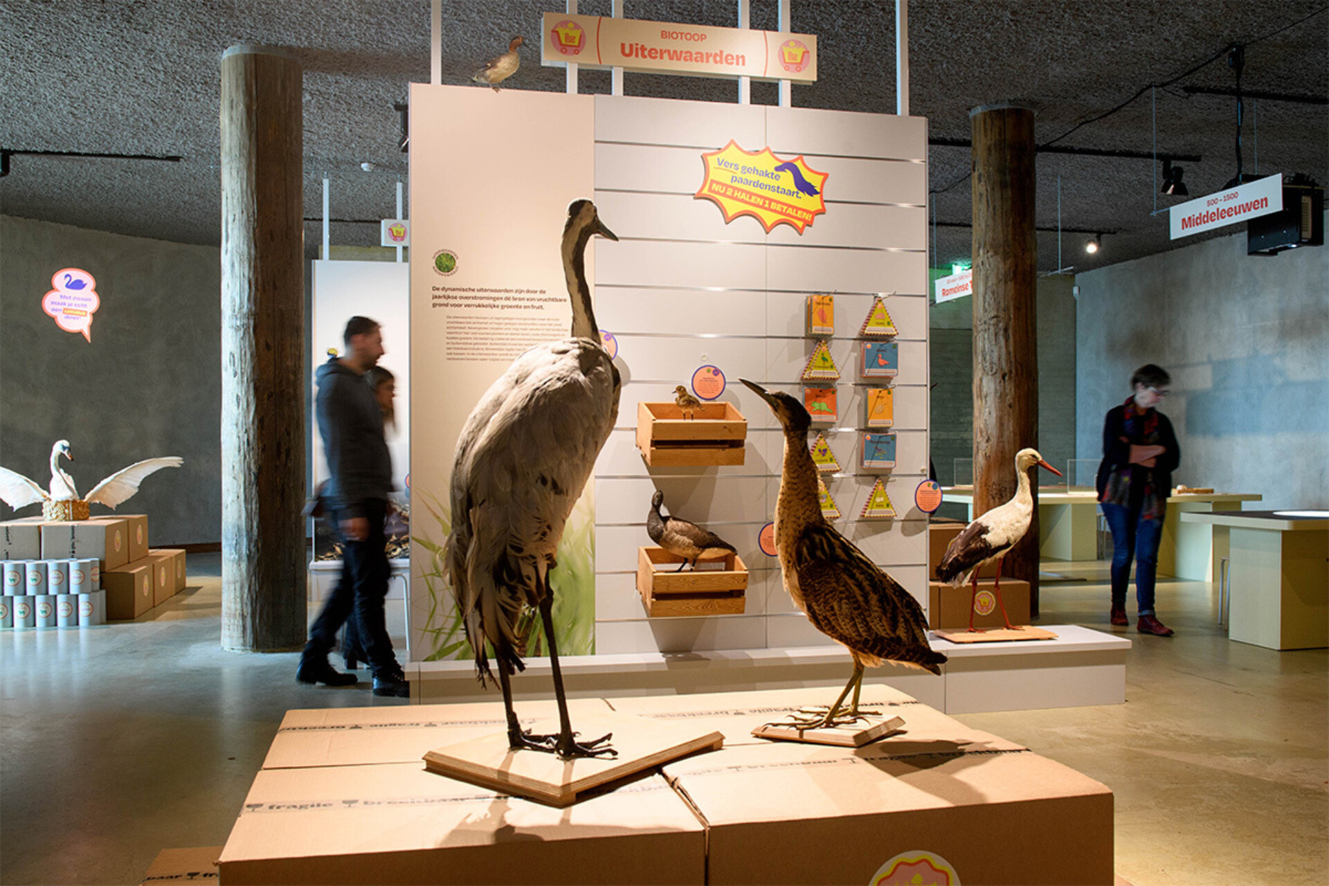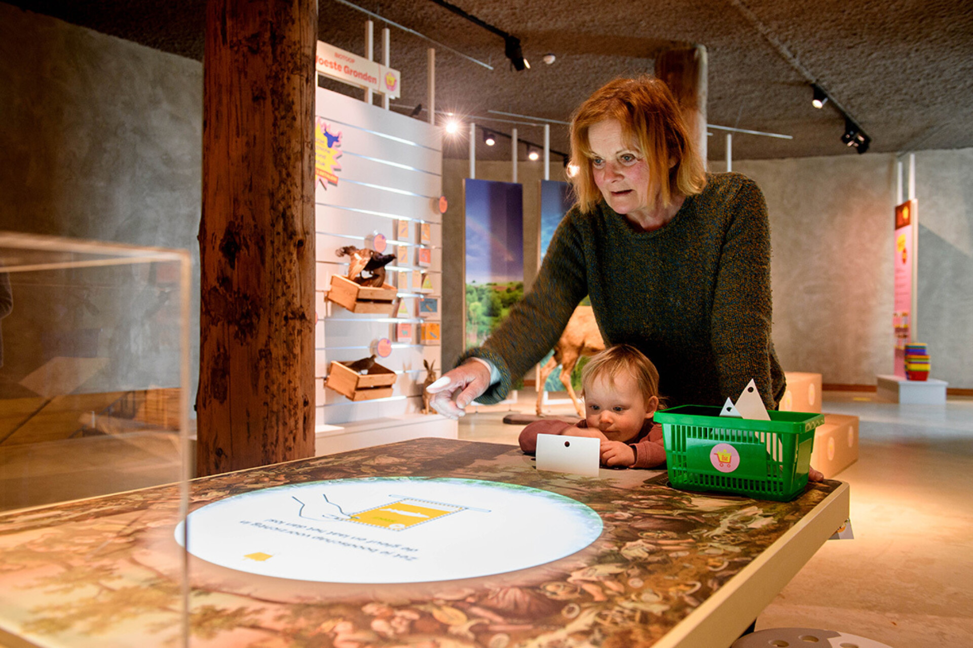 Eten we vanavond gemarineerde otterlapjes of eenkoornpannenkoeken? Aan het begin van de tentoonstelling kiest de bezoeker zelf een recept uit en gaat vervolgens de supermarkt in.