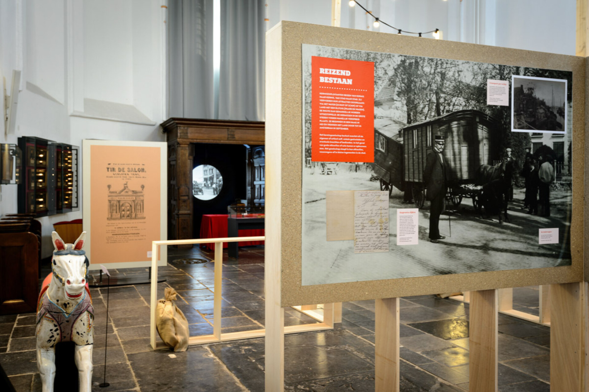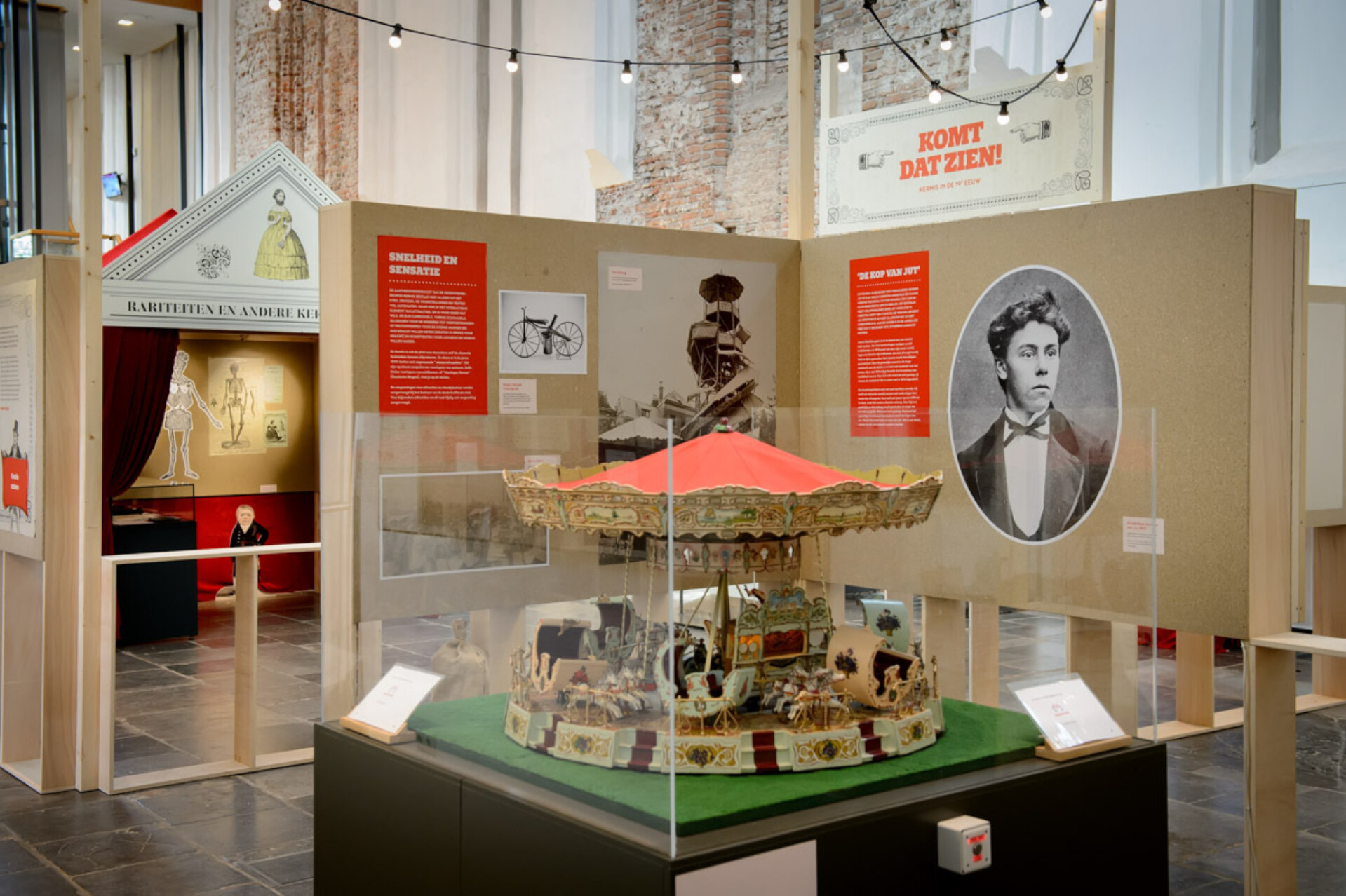 De bezoeker wordt naar binnen gelokt met originele stukken zoals een paard afkomstig van een stoomdraaimolen (in bruikleen van het Markiezenhof) of de kleding van Simon Paap, de kleinste man van Haarlem (in bruikleen van het Teylers Museum).