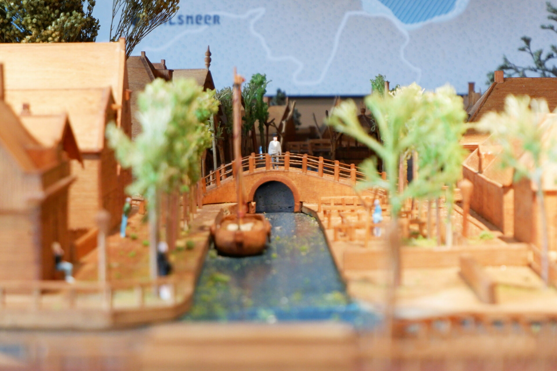 Bijna 20 jaar lang lag een grote houten maquette in het depot van het Zuiderzeemuseum. De maquette, in de jaren ’80 gemaakt door een vrijwilliger, laat in één oogopslag de omvang van het buitenmuseum zien en welke gebouwen, huizen en bruggen er te vinden zijn. Nadat de maquette werd gerestaureerd kreeg deze in het voorjaar van 2023, op de 75e verjaardag van het Zuiderzeemuseum, weer plaats in het vernieuwde Entreepaviljoen van het museum. Om bezoekers hier te leren over de totstandkoming van het buitenmuseum, hebben wij de maquette tot leven gebracht.