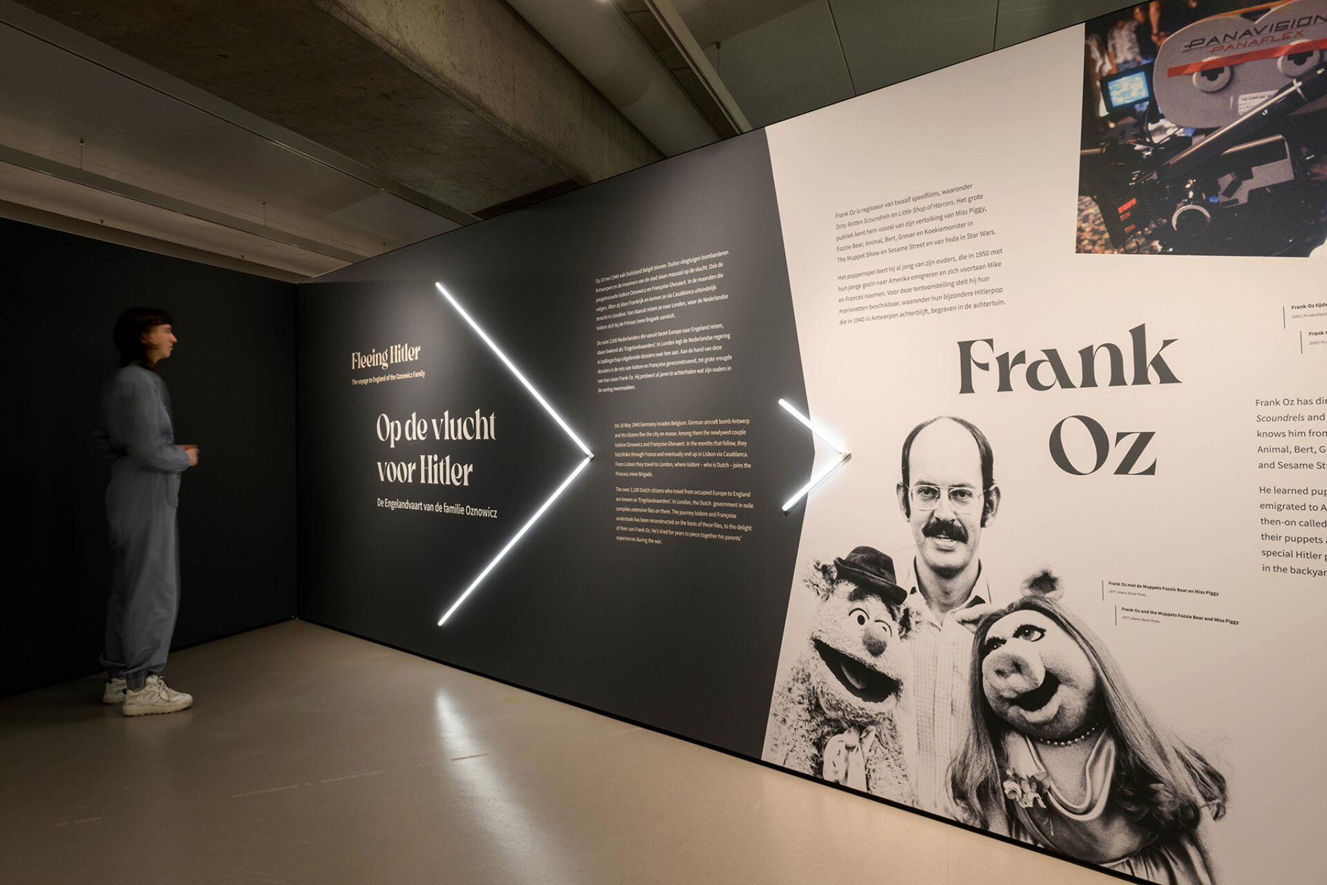 Op de vlucht voor Hitler – De Engelandvaart van de familie Oznowicz vertelt het verhaal van Isidore en Francoise Oznowicz, de ouders van Frank Oz. In 1940 ontvluchtten zij Antwerpen en maakten een gevaarlijke reis via Frankrijk, Casablanca en Lissabon naar Engeland. De tentoonstelling verbindt archiefstukken uit het Nationaal Archief, hun handgemaakte marionettenpoppen en een indringend interview tussen Frank en zijn vader.Â