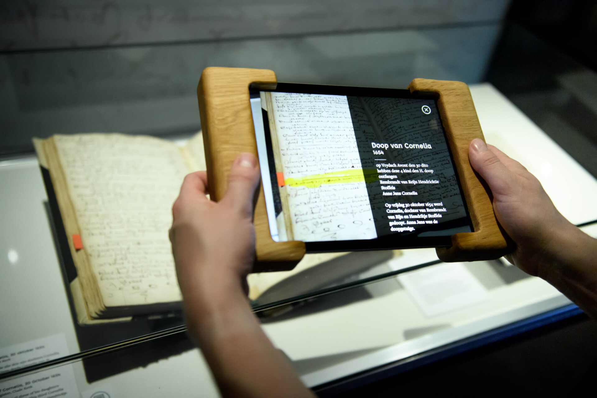 In de tentoonstelling loop je rond met een Rembrandtviewer, waarmee je de bronnen van het Stadsarchief kunt scannen. Dankzij de toepassing van augmented reality (AR) worden de originele documenten toegankelijk gemaakt, verrijkt met beeld en geluid en digitaal geĂŻllustreerd met kunstwerken van over de hele wereld. Naast de archiefstukken is er op de tentoonstelling ook origineel werk van Rembrandt te zien.