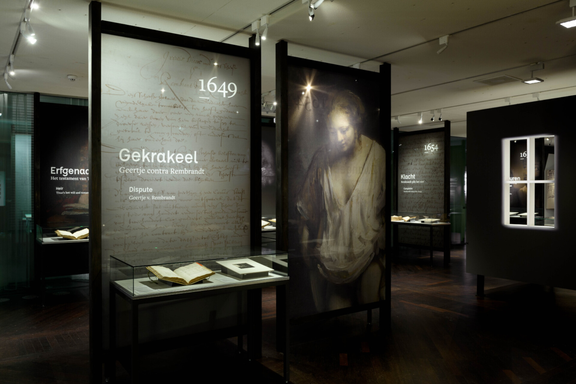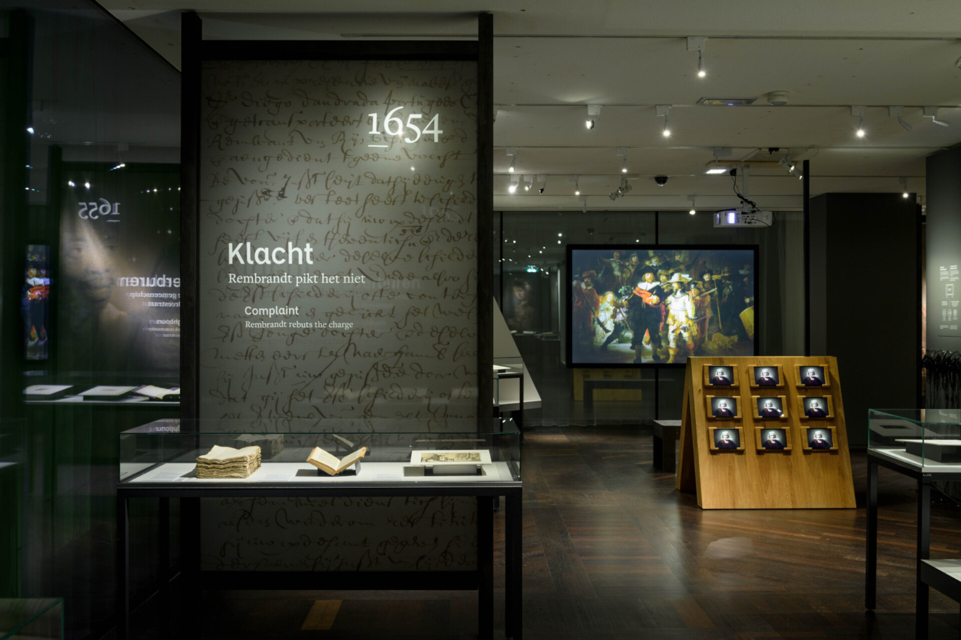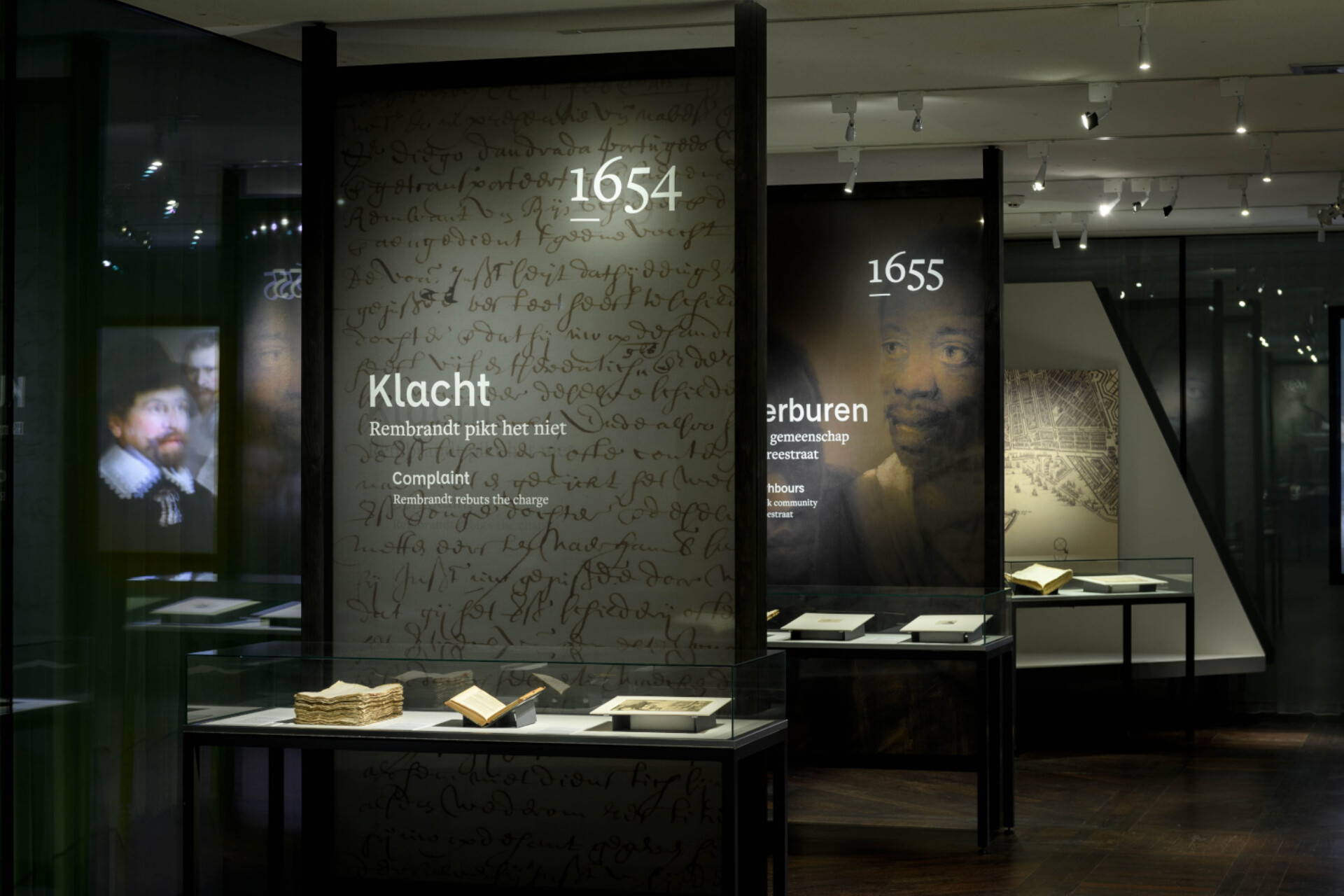 Ontdek Rembrandts leven in Amsterdam aan de hand van tientallen historische documenten, chronologisch tentoongesteld in het Stadsarchief. Elk jaartal dat een rol speelt in de tentoonstelling is gekoppeld aan een thema, alle thema’s vormen samen een open tentoonstelling. De thema’s hebben elk hun eigen achterwand, gemaakt van geprint doek. De doeken scheppen een gelaagde tentoonstelling vol spannende doorkijkjes. De sfeer en belichting is geïnspireerd door Rembrandts veelvuldige gebruik van clair-obscur.