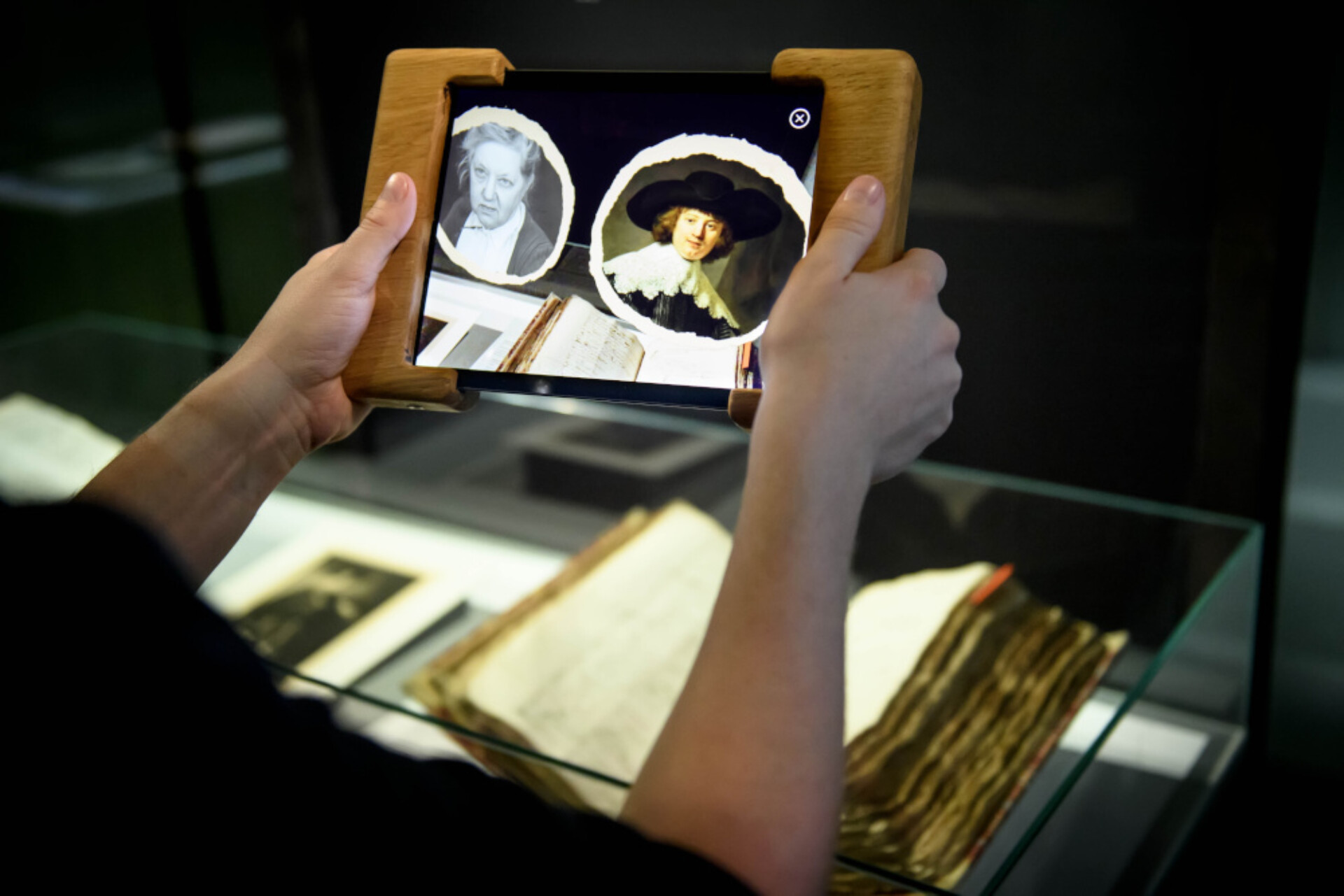 Speciaal voor het tot leven brengen van de documenten, ontwikkelde Synergique de Rembrandtviewer. De Rembrandtviewer is het totaal van een iPad in een op maat gemaakte houten case waar twee koptelefoons in kunnen. De Rembrandtviewer is voorzien van een applicatie die elk document in de ruimte kan scannen en kan verlevendigen met verhalen, teksten en animaties in augmented reality.