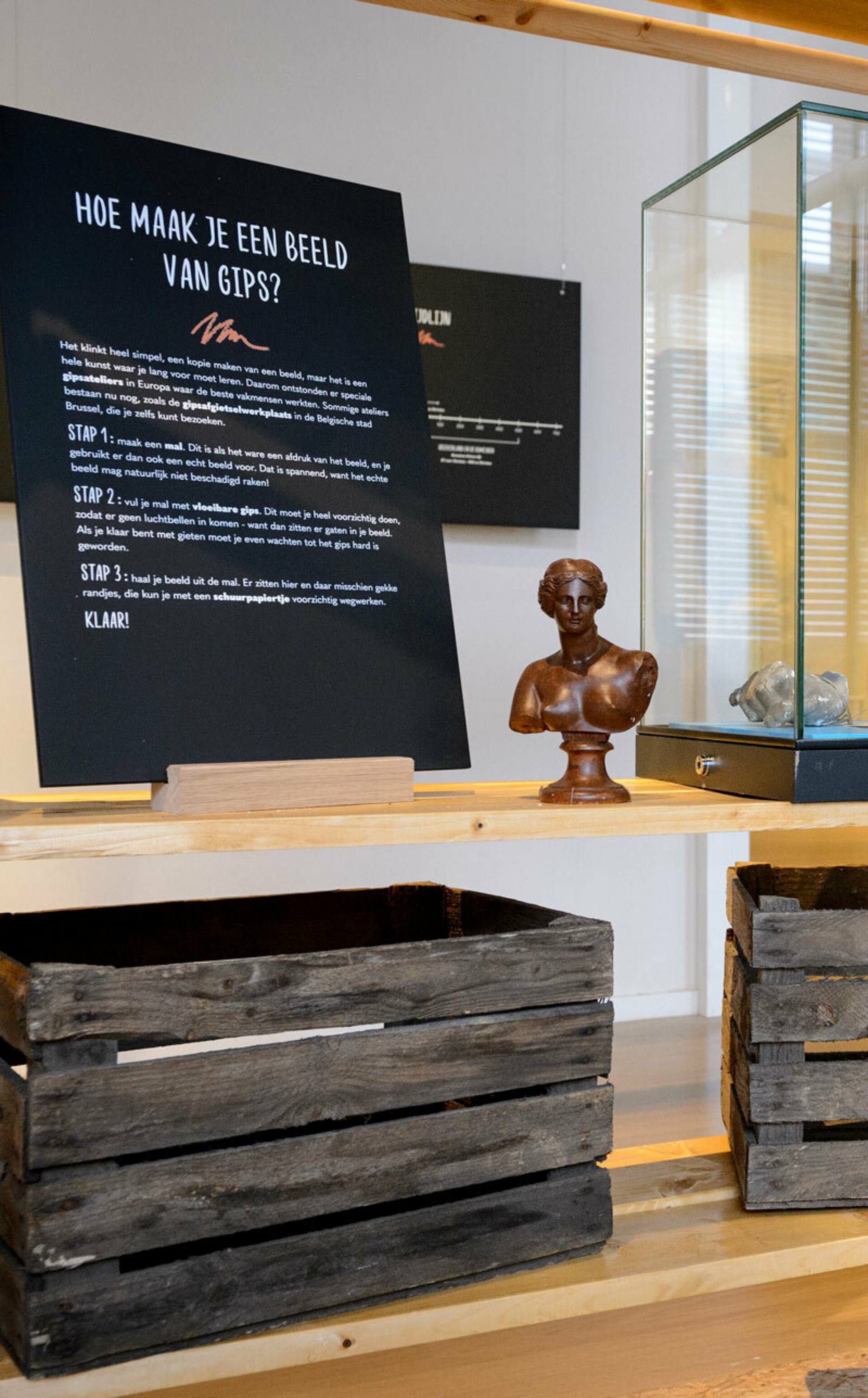 De aankleding, de stellingkasten met collectiestukken, de belichting en de betimmering met geleefd hout geven de bezoeker het gevoel dat de gipsen net uit hun kist komen, wat de zaal de zaal nog inspirerender maakt.