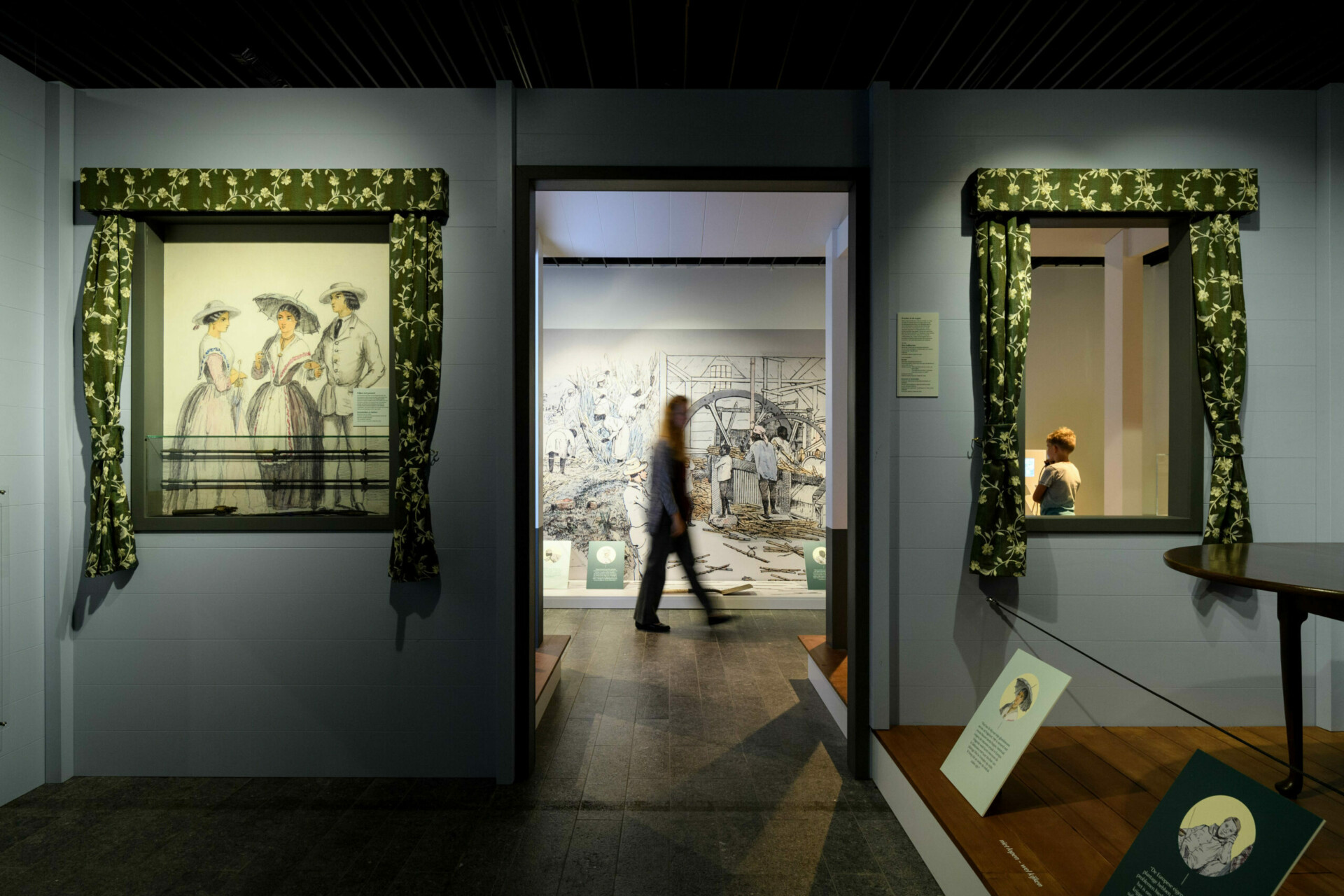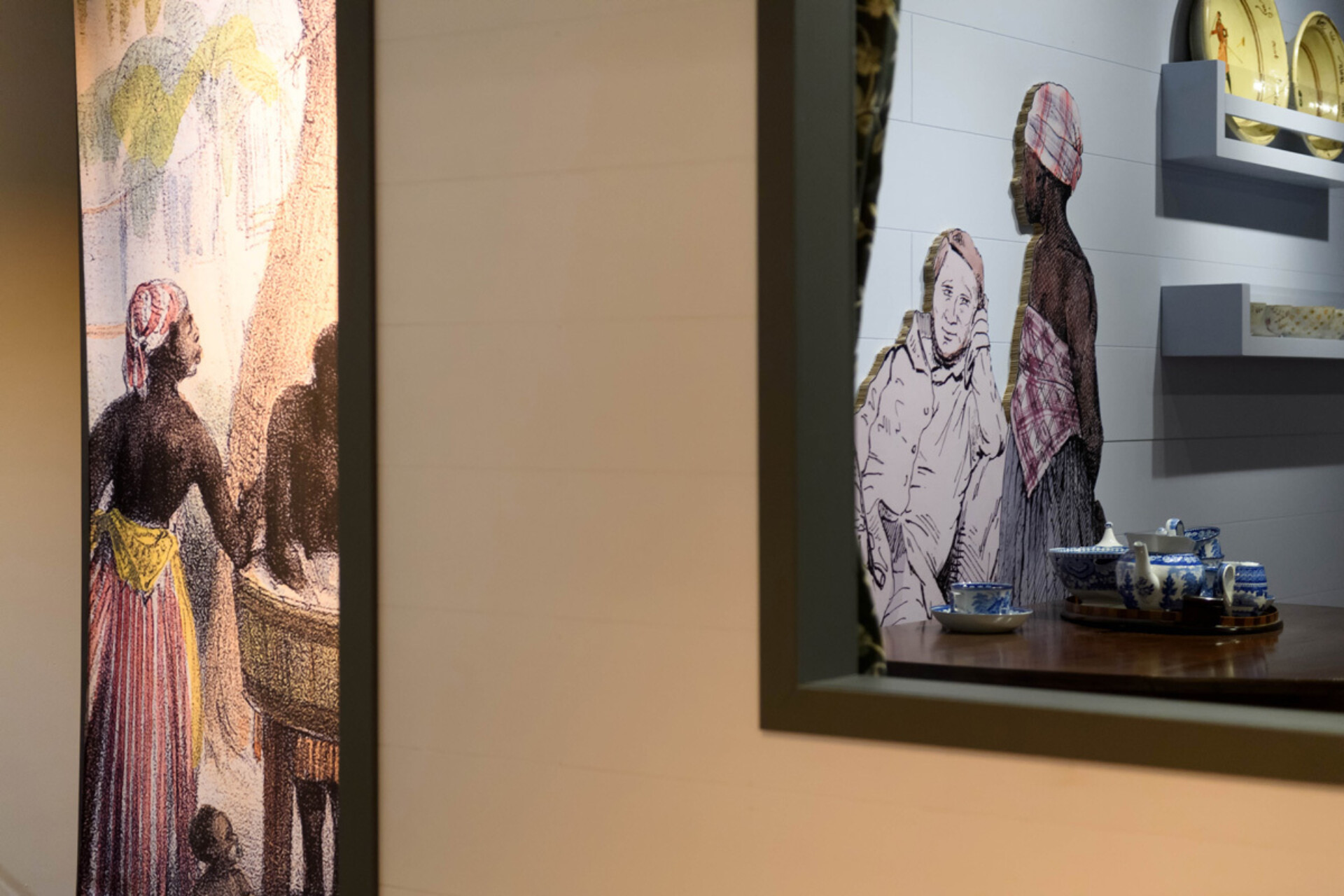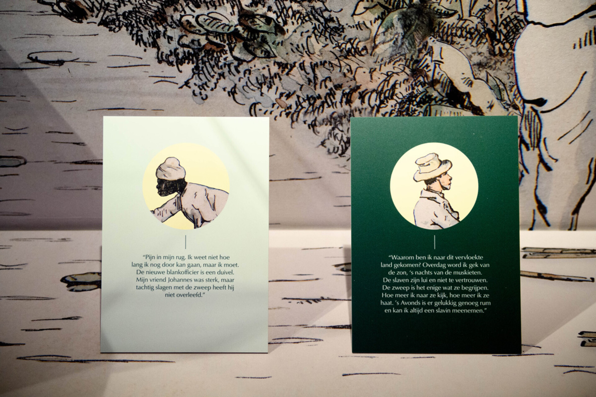 In de tentoonstelling laten we het schrijnende contrast zien tussen het harde werk op het land en het rijke leven in de koloniale landhuizen. De collectie onderschrijft dat contrast. Kapmessen, kappa’s, hakken en schoppen voor gebruik op de plantages lagen tussen kisten vol rijk versierde serviezen, pijpen en sierbeslag om voor het luxe leven van de plantage-eigenaren. Tegenovergesteld van wat je zou verwachten, begint het verhaal in de tentoonstelling bij het slavernij verleden en duiken we op het einde pas onder water.