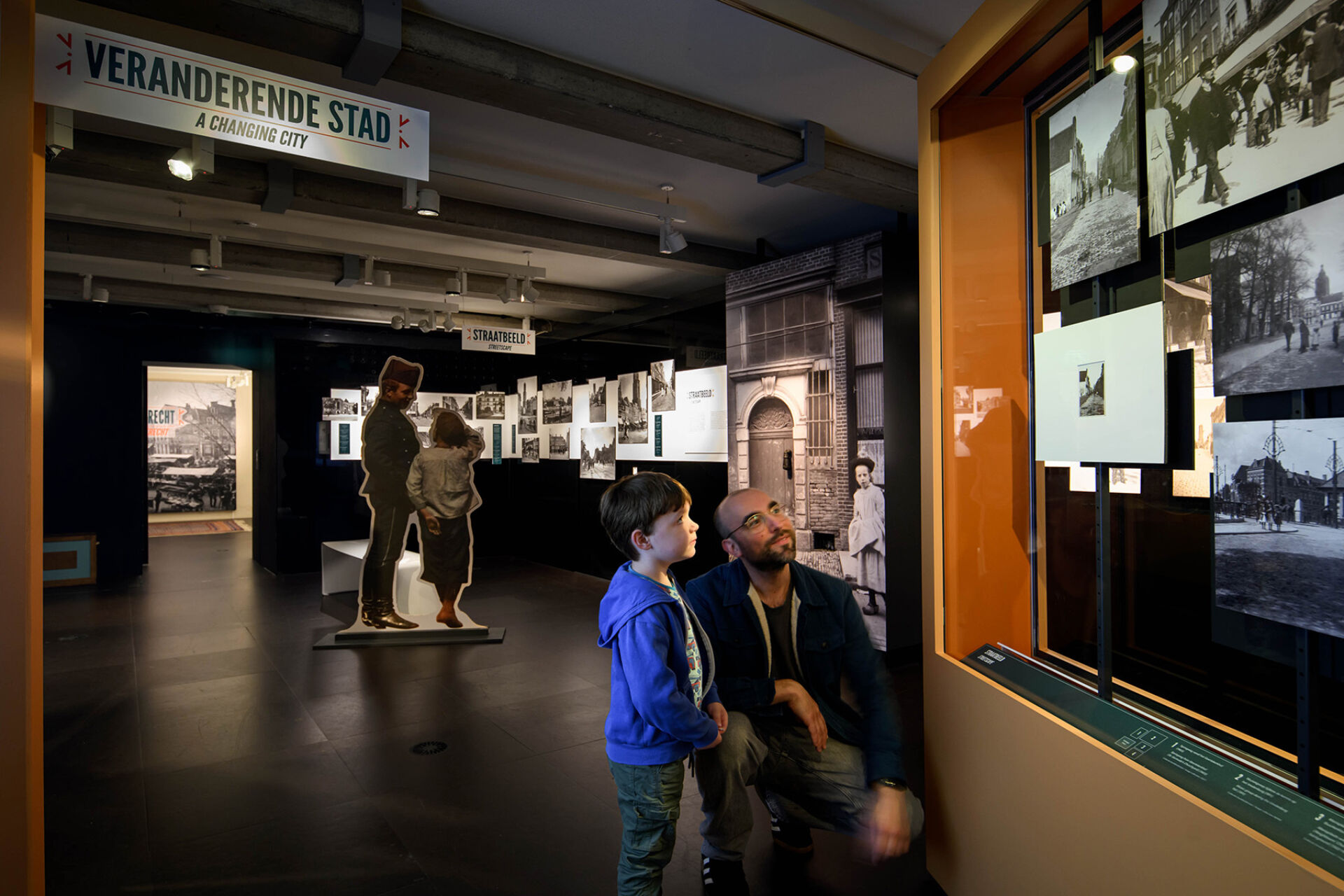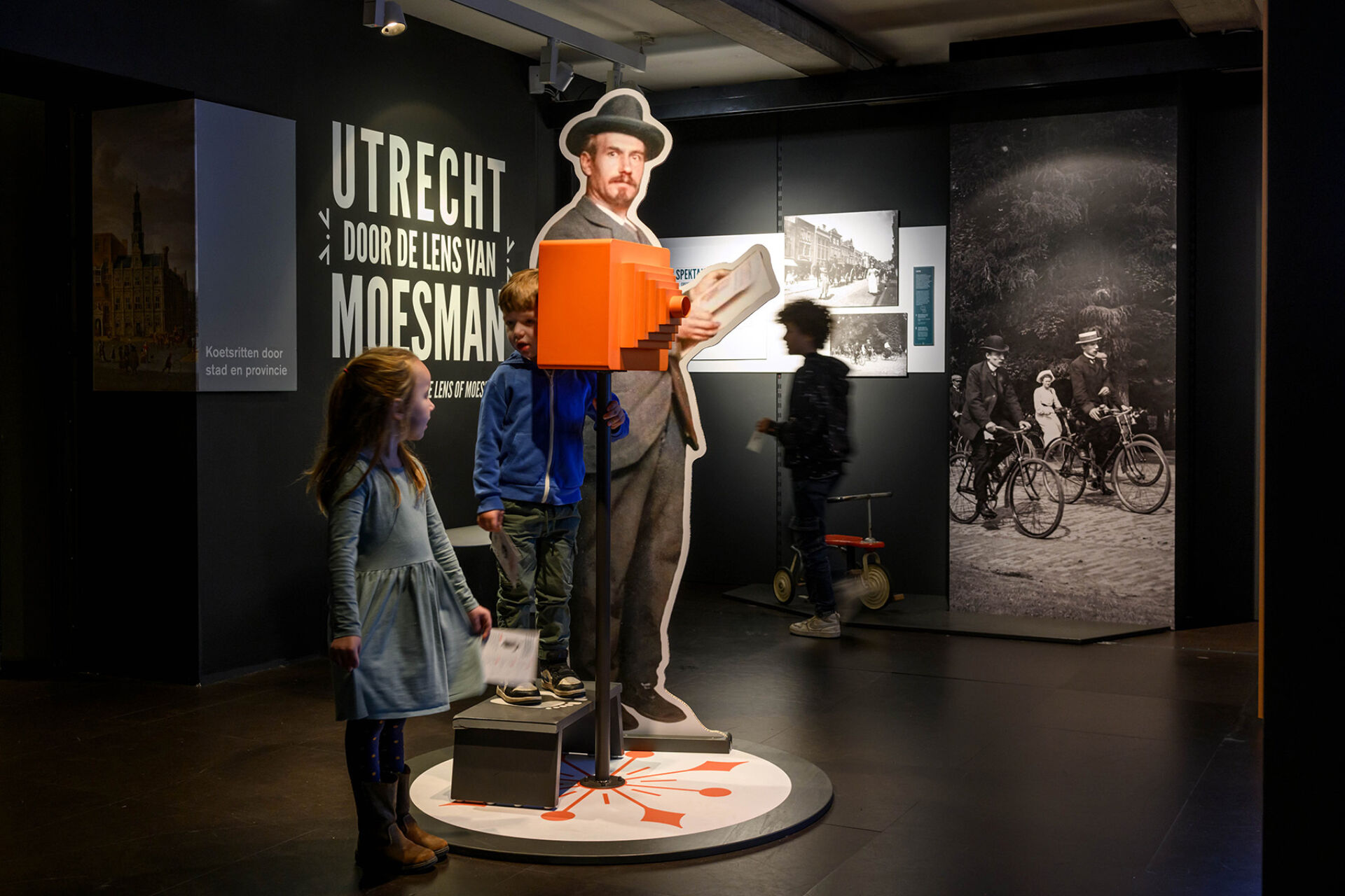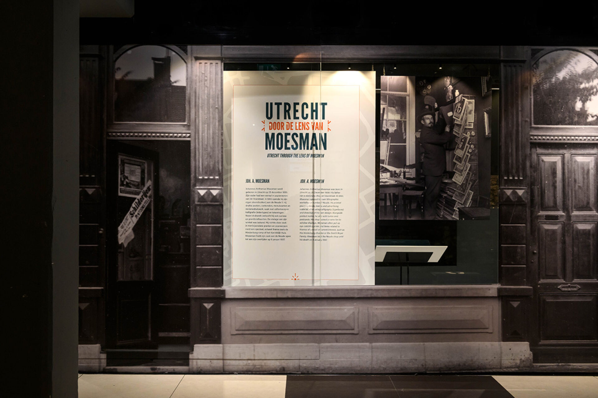 De winkel van Moesman dient als startpunt van de tentoonstelling, waar je zijn lithografisch werk ziet en ontdekt dat hij ook fotografeerde. Vervolgens ga je met hem de stad in en kijk je als het ware door zijn lens. In een belevingsruimte word je meegenomen door een representatie van Utrecht begin 1900 en zie je herkenbare plekken. Verrijkt met animatie, soundscapes en doe-activiteiten voor kinderen komt het stadsleven dat Moesman vastlegde tot leven en beleef je het verleden alsof je er zelf doorheen loopt.