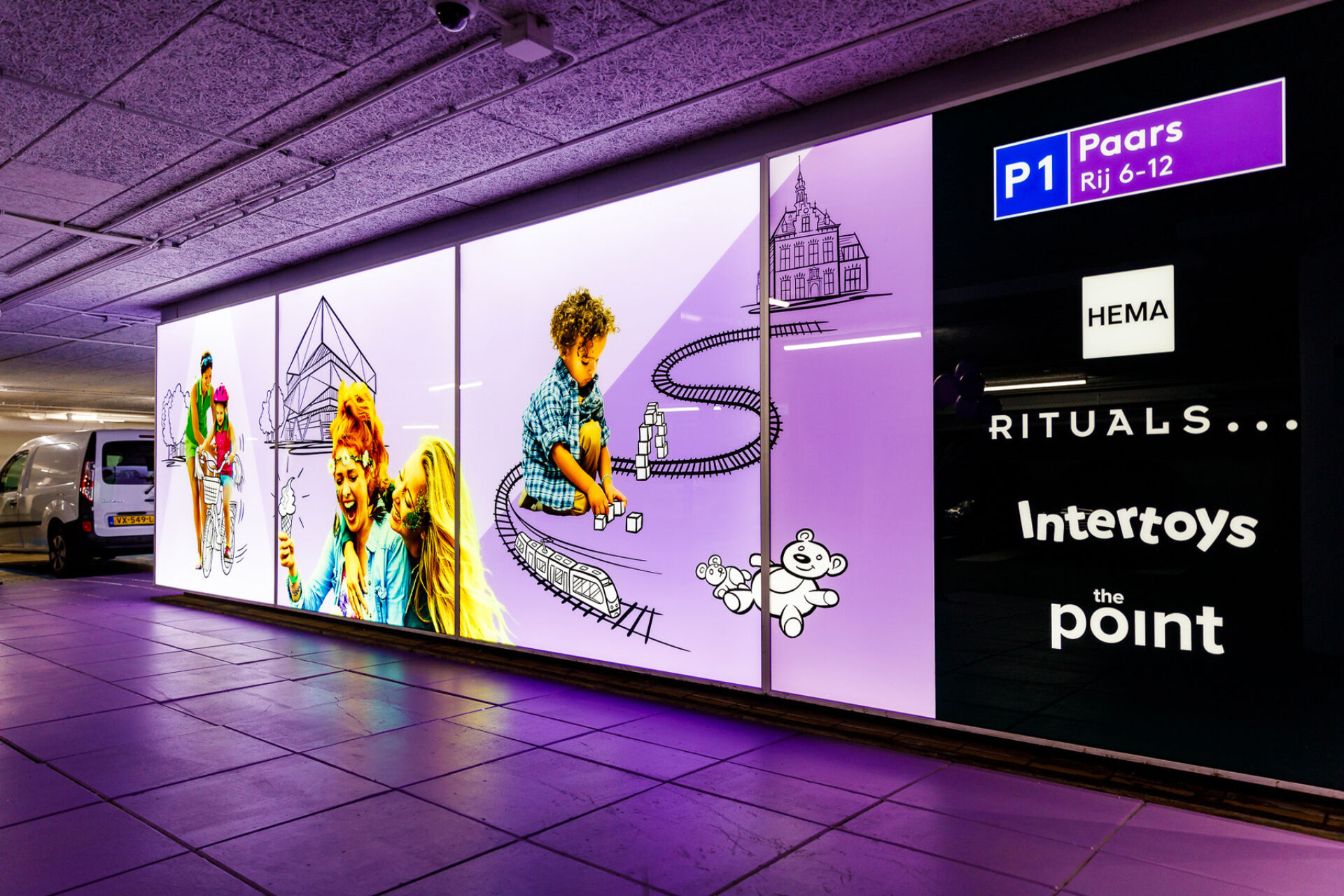 Voor Wereldhave hebben we de parkeergarages van verschillende winkelcentra in Nederland en België een kleurrijke upgrade gegeven. Met een mix van illustraties en fotografie hebben we de muren omgetoverd tot levendige beelden van de steden waarin de centra zich bevinden. Denk aan bekende gebouwen, herkenbare plekken en iconische stadsgezichten die direct een lokale sfeer oproepen. Elke garage vertelt zo een eigen verhaal, geïnspireerd door de unieke karakteristieken van de stad.